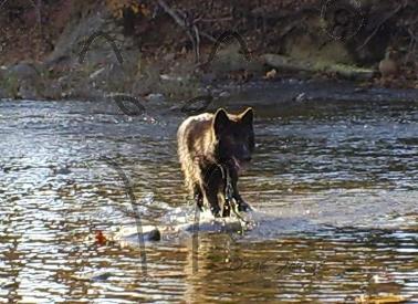 A High Content Blackphase Wolfdog taking a swim after a day at the park doing an education seminar.